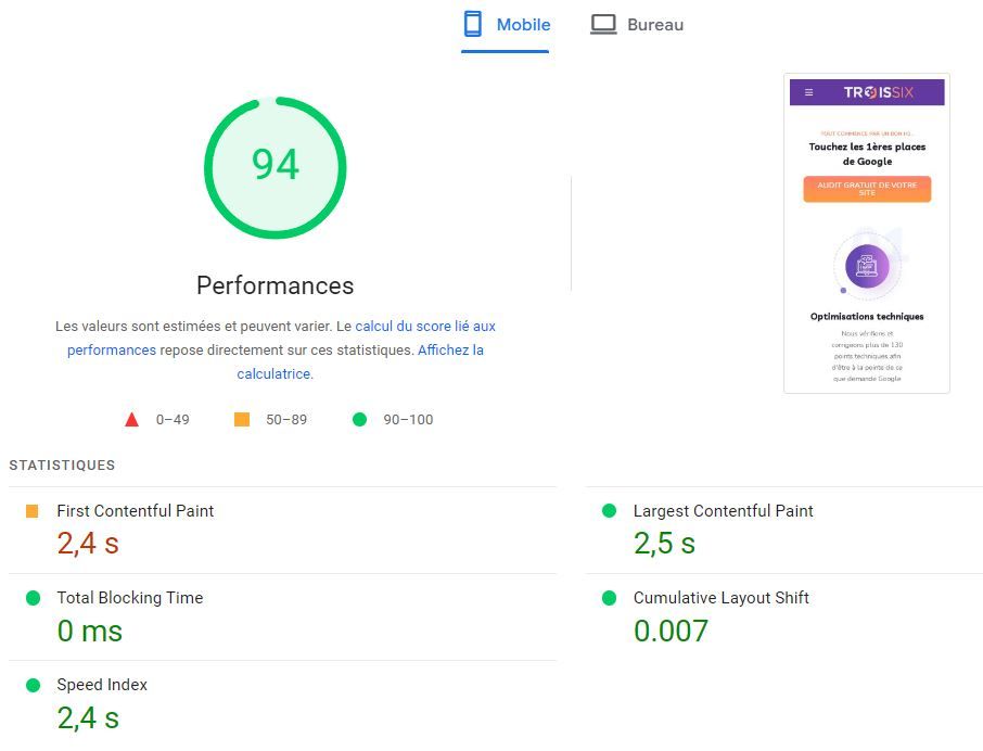 J'ai demandé à Alex de jeter un œil à la vitesse de Troissix, et... 🤯 Résultat : Performance à 94 ! 🔥