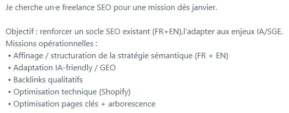 Juliette cherche un #SEO pour une mission en janvier ! Lien en commentaire